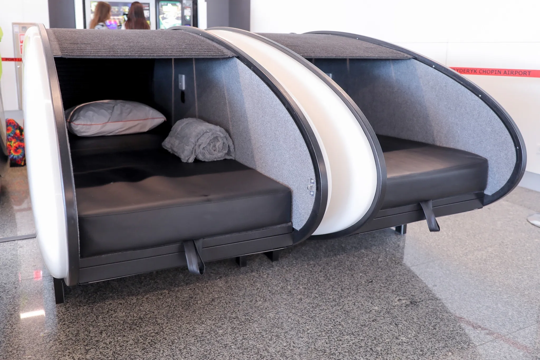 Локація для сну знаходиться в аеропорту Шопена біля автобусних гейтів 2N/3N. Вона працює з 19:00 до 07:00. Але в майбутньому послугу планують надавати цілодобово.