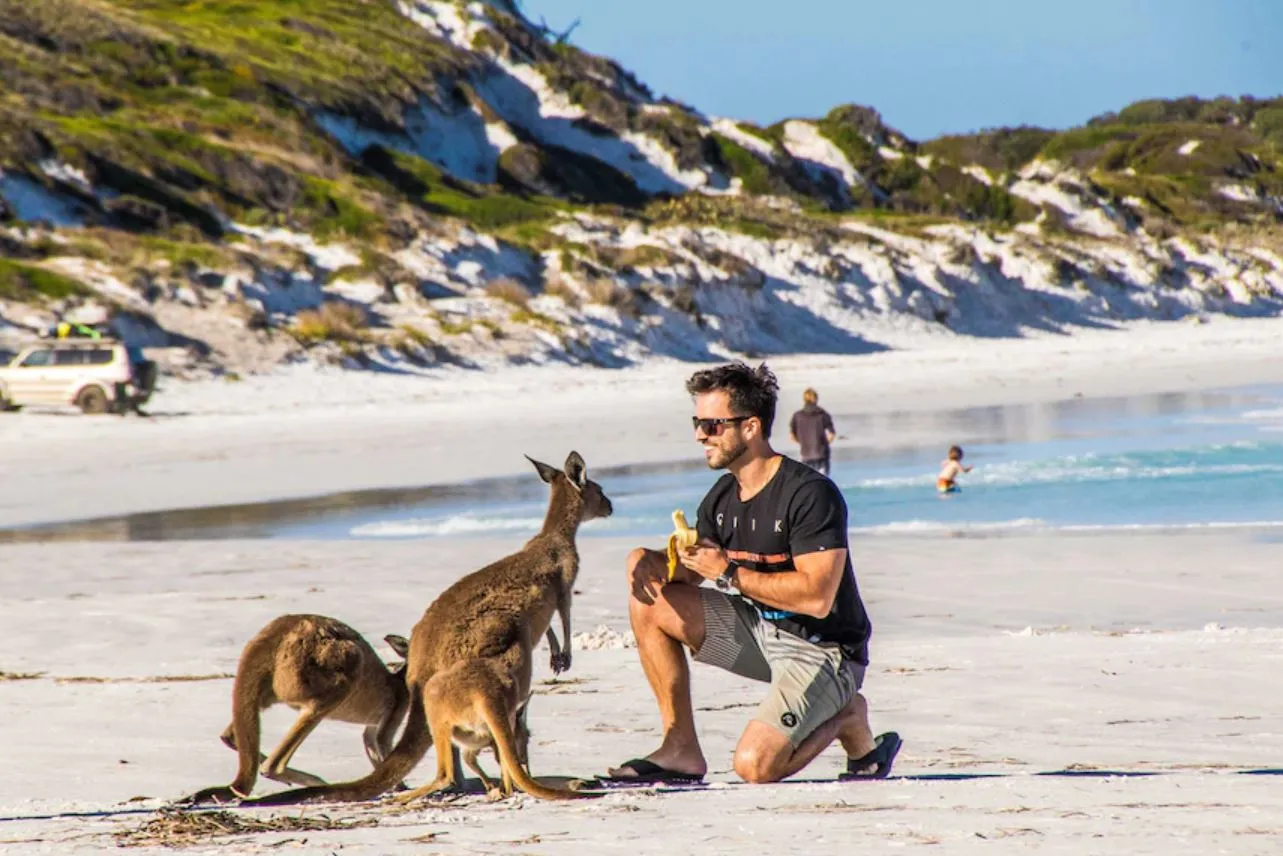 Пляж Лакі Бей в Австралії розташувався на території Національного парку Кейп-Ле-Гранд. Цього року він заслужив звання найкрасивішого у світі. І тут справа не лише в його мілкому піску та фантастичній береговій лінії. Пляж має "родзинку" – тут вільно гуляють кенгуру.