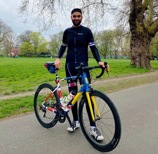 Велосипед Тома в кольорах українського та британського прапорів / Фото Твіттер Тома Хашемі