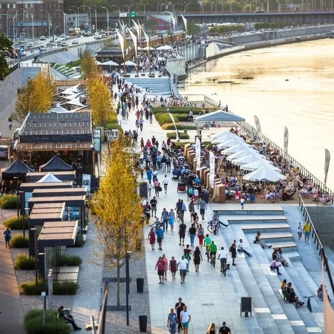 Набережну адаптували до потреб людей з інвалідністю та сімей з дітьми. Також тут проводяться спортивні та культурні заходи для дітей і дорослих. Крім того, за кілька хвилин від берега річки є Науковий центр Коперника, Музей на річці Віслі та Мультимедійний фонтан-парк.