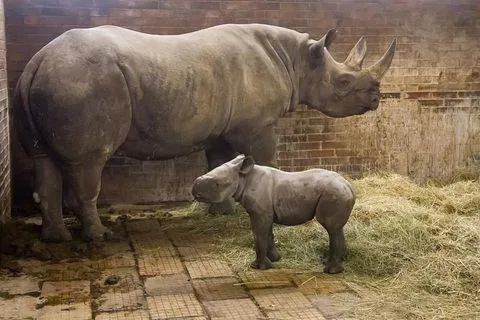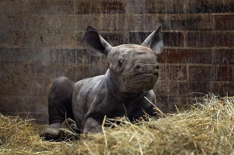 Фото новонародженого носорога у чеському зоопарку