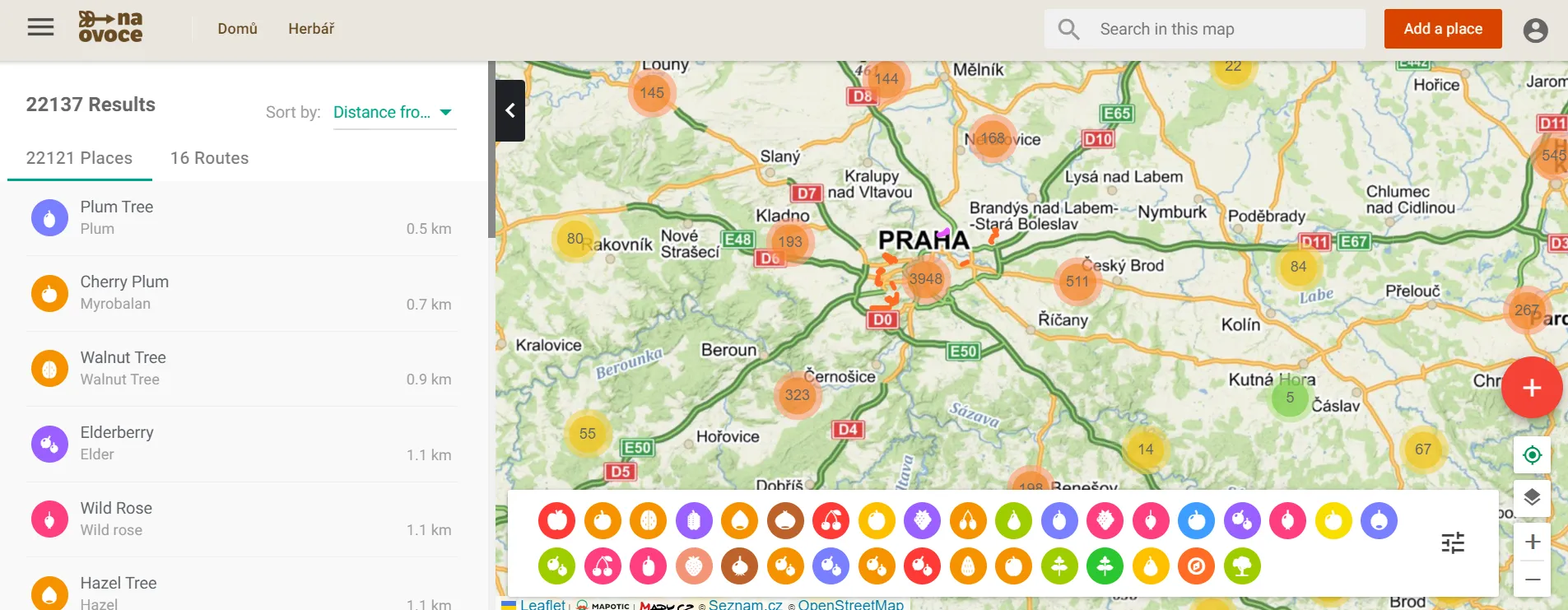 Щоб урожай, за яким ніхто не доглядає, не пропадав марно, ентузіасти створили проєкт Na ovoce. Це онлайн-карта та мобільний додаток, які показують, де саме ростуть фрукти, ягоди та горіхи. Дані можна дізнатися по всій Чехії, але найбільше локацій відмічено на карті в межах Праги. Вказати конкретне місце можуть зареєстровані користувачі.