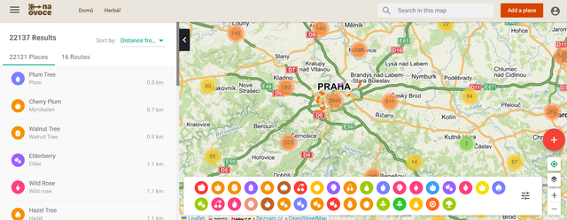 Онлайн-карта з локаціями фруктових насаджень у Празі / Фото na-ovoce