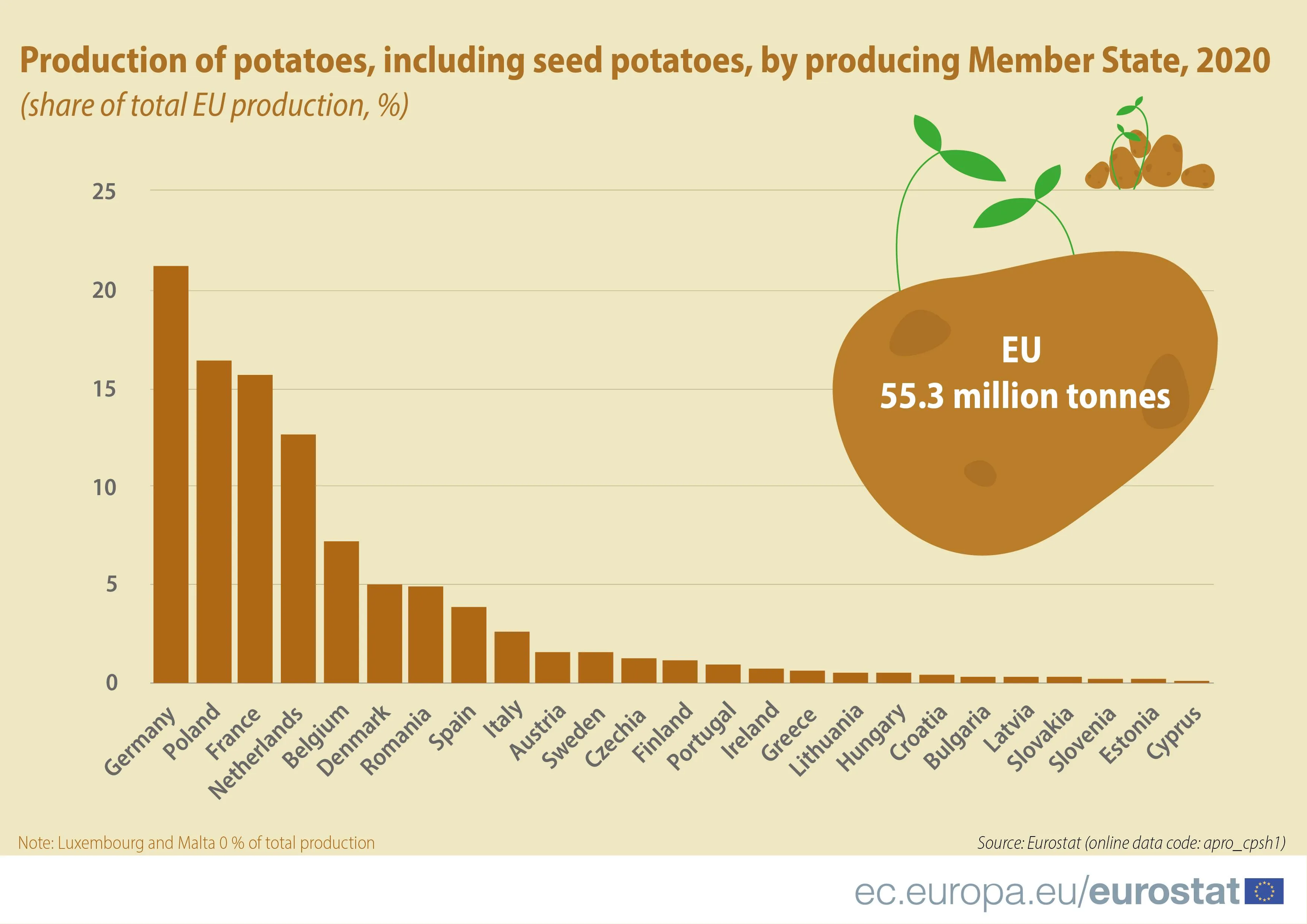 На перелічені вище п'ять держав-членів припадає майже 75% загального виробництва картоплі в ЄС.