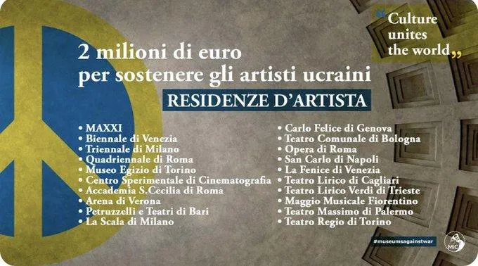 За повідомленням Даріо Франческіні, Італія виділить 2 мільйони євро на підтримку українських діячів мистецтва, які проживають в Італії.
