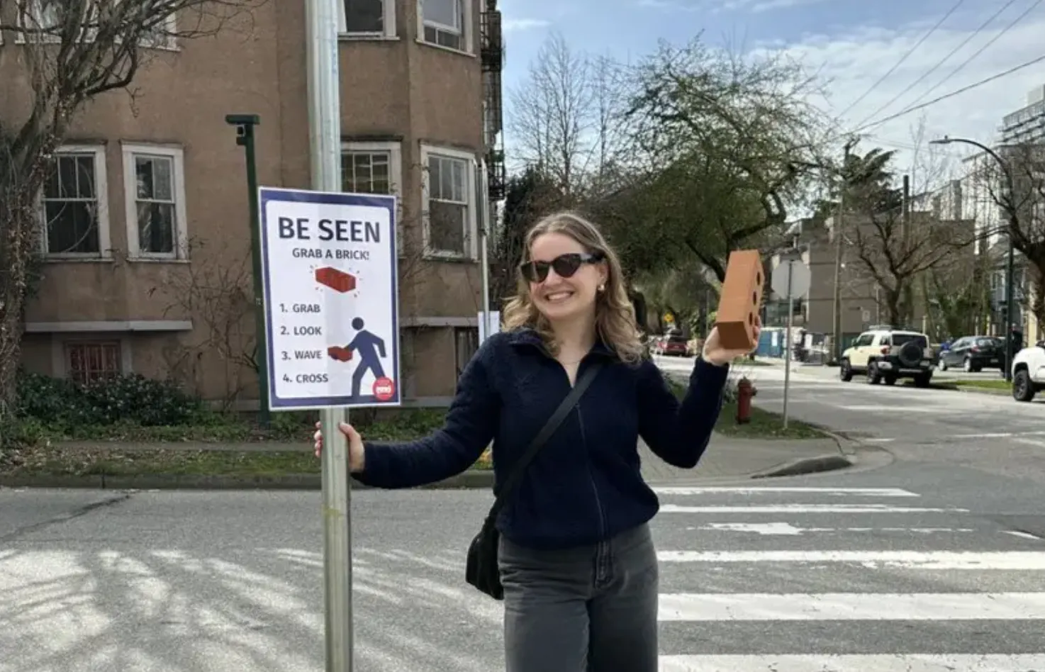 Канадські активісти змусили водіїв пропускати пішоходів на зебрі цеглою / Фото VisionZeroVancouver