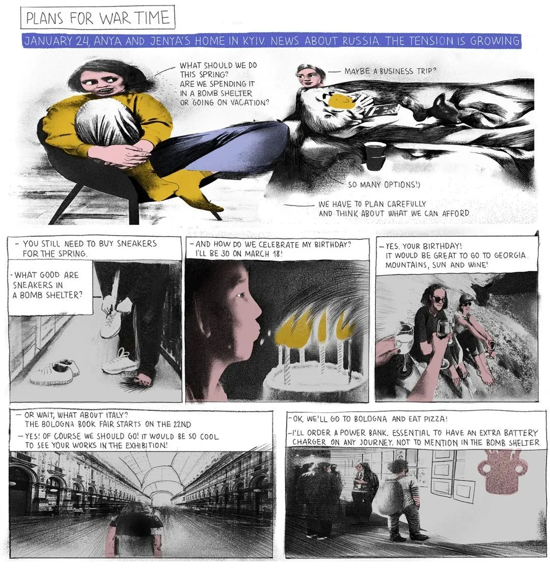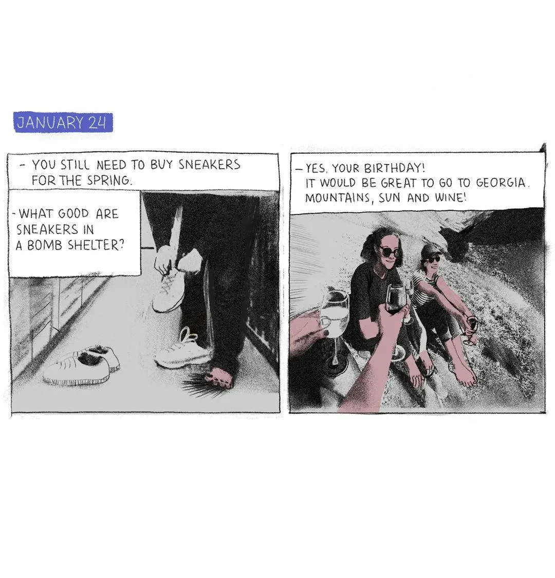 Зокрема, в ілюстративній історії Євгенія та Анна згадали про те, що кожна з них мала грандіозні плани на весну 2022 року. Однак їх вщент зруйнувала російська армія. Подорожі до Грузії та Італії замінили безсонні ночі в холодних укриттях, черги за харчами та евакуація до безпечного місця.