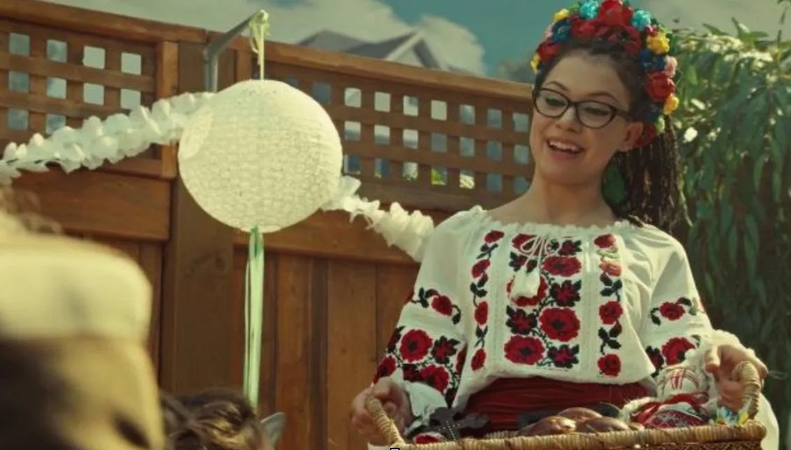 Цікаво, що в серіалі "Чорна сирітка" вона грає низку персонажів. І одним з них є Хелена з України.