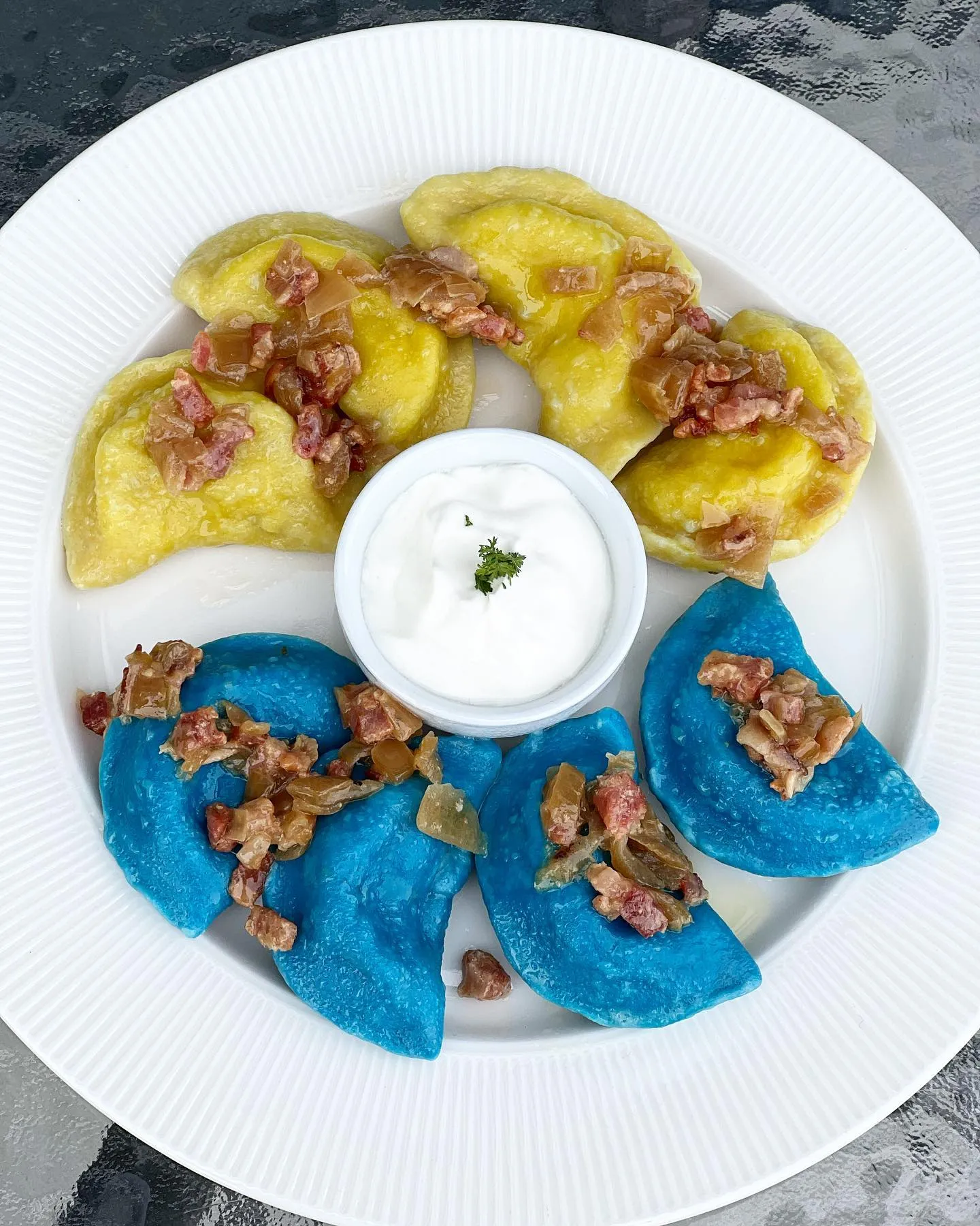 Йдеться про пекарню Malina Ukrainian Bakery в канадському Едмонтоні. Там можна поласувати українською випічкою, а віднедавна у меню з'явилася особлива позиція – гостям пропонують синьо-жовті вареники з картоплею.