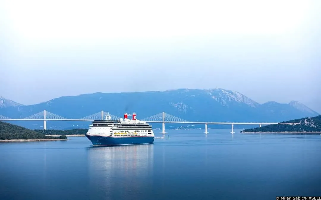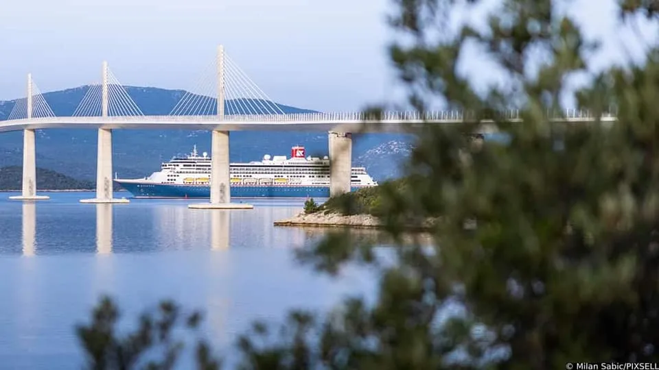 Поки Пелєшацький міст, що з'єднує регіон Дубровник-Неретва з материковою частиною Хорватії, планують лише ввести в експлуатацію, під ним уже пройшов перший круїзний лайнер.