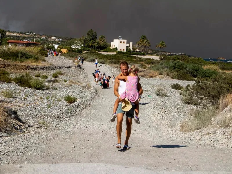 Туристи мусили пішки йти від своїх готелів на Родосі, бо до них уже підбиралося полум'я. Далі людей забирали з безпечних доріг та відвозили на ночівлю до шкіл та спортзалів.