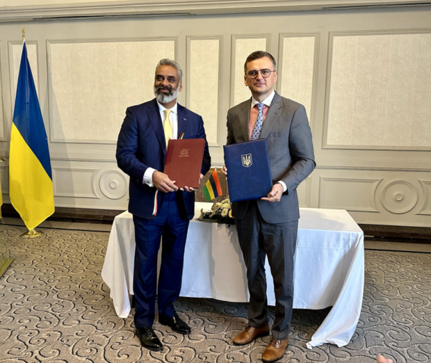 Міністр закордонних справ Дмитро Кулеба зі своїм колегою Манішем Гобіном / Фото МЗС України