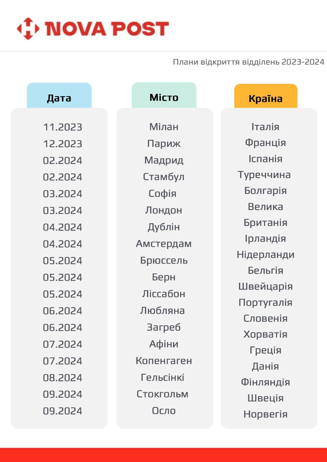 Ще більше деталей про запуск нових відділень Nova Post у Європі: