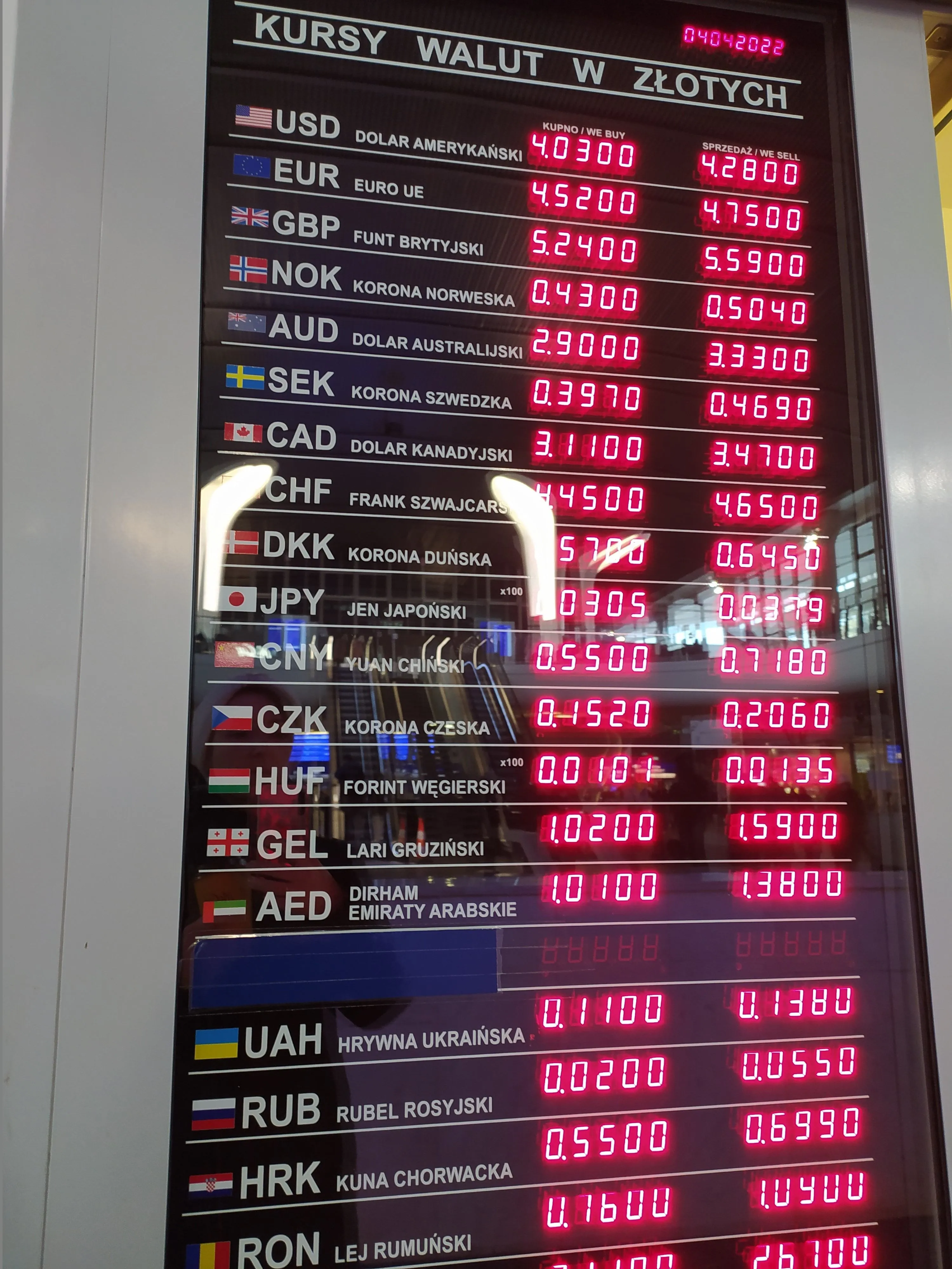 З 25 березня курс обміну не змінювався: за 1 гривню можна отримати 0,14 злотого, а за 1 000 гривень, відповідно, 140 злотих.