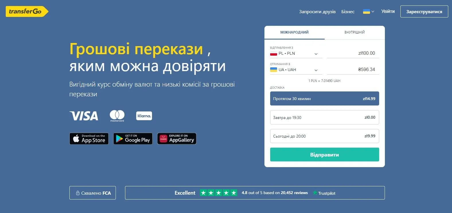 Відправляйте гроші рідним легко та надійно / Скриншот із сайту TransferGO