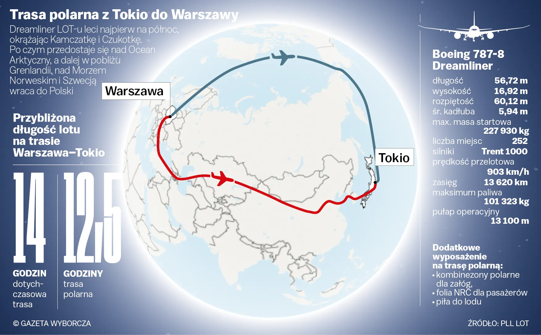 Маршрут арктичного рейсу до Токіо / Gazeta Wyborcza