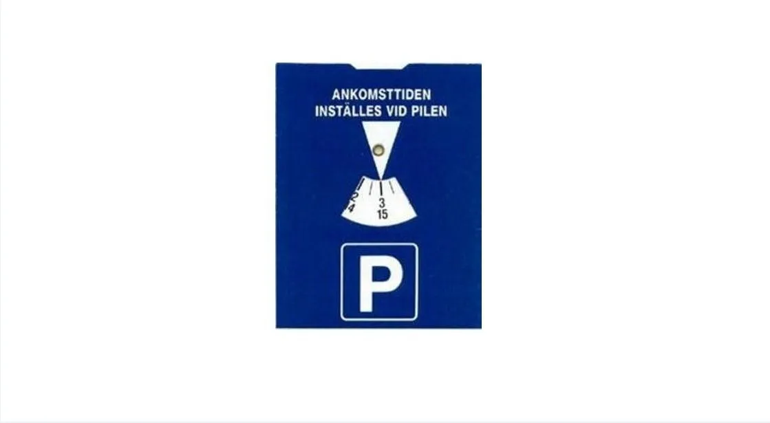 Это такой привычный элемент шведской парковки, что его раздают в подарочных пакетах новоиспеченным гражданам. Парковочный диск необходим, когда на паркоместе нанесен текст "p-skiva" или же изображен соответствующий символ.