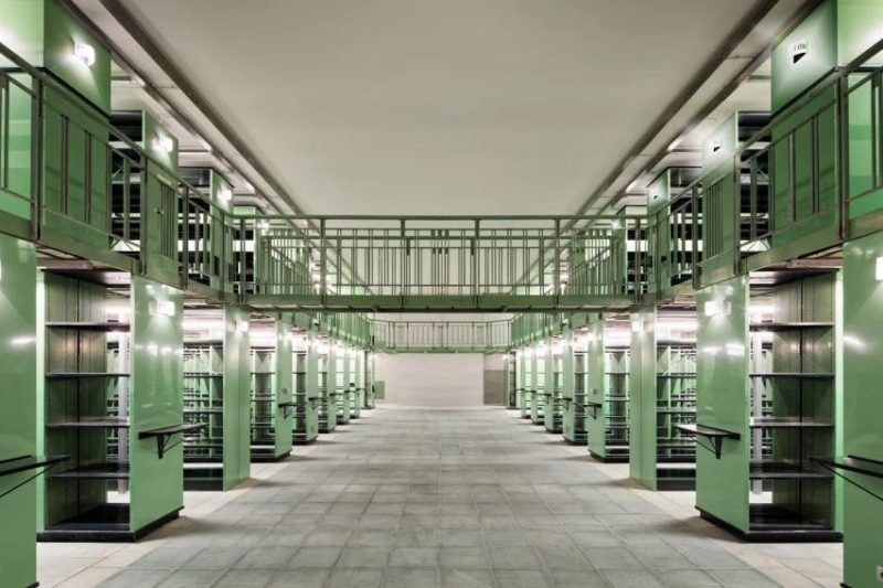 Книгохранилище французской национальной библиотеки никогда не имело статуса памятника истории, однако занимавшиеся проектом специалисты Bruno Gaudin Architectes сохранили поэтику места даже на "складах".