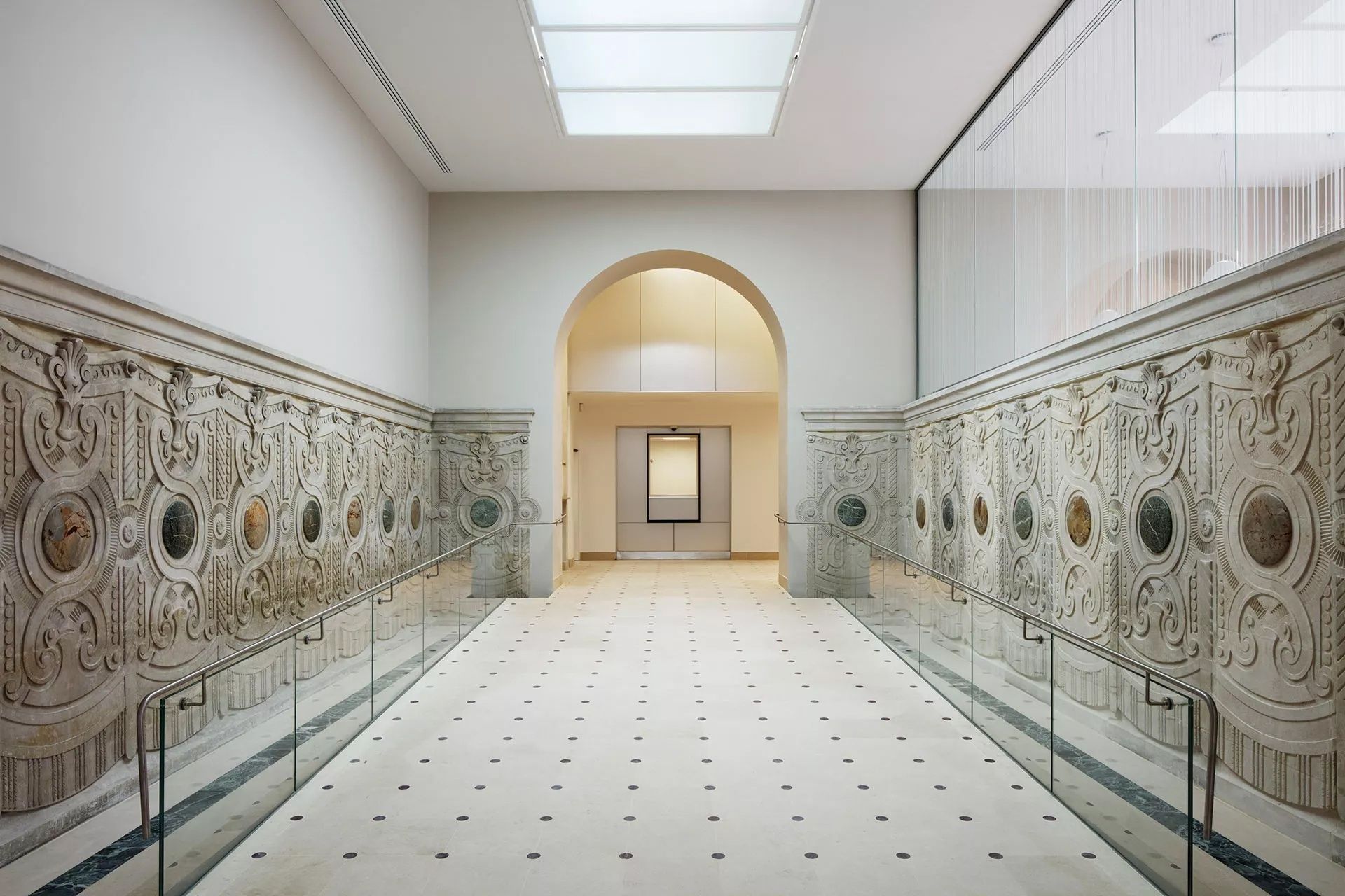 На первом этаже восточная и западная части здания были соединены новой "стеклянной галереей". Она представляет собой застекленный коридор со стеклянным полом, ведущий к новому музейному помещению и отделу монет, медалей и антиквариату.