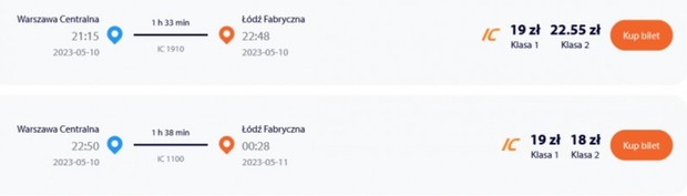 Благодаря акции "Promo" на популярных направлениях, таких как Варшава в Краков, Труймясто, Катовице или Познани, цены билетов могут начинаться от 19 злотых. Поездки из столицы в Лодзь, Люблин или Белосток возможны за 14 злотых.