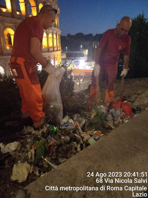 Спека останніх днів і наплив туристів призвели до того, що на всіх територіях навколо амфітеатру, особливо в зелених зонах та під деревами, туристи викидають велику кількість сміття, в основному пластикових пляшок,