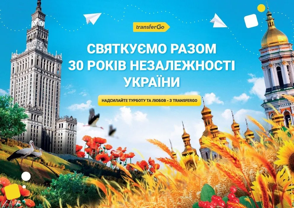 Компанія TransferGo ласкаво запрошує всіх українців відсвяткувати разом з ними цю визначну подію на пікніку у Кракові та на музичному фестивалі у Вроцлаві. На честь свята сервіс грошових онлайн-переказів підготував спеціальний подарунок – промокод UA30. З його допомогою можна здійснити три швидкі грошові перекази повністю безкоштовно.