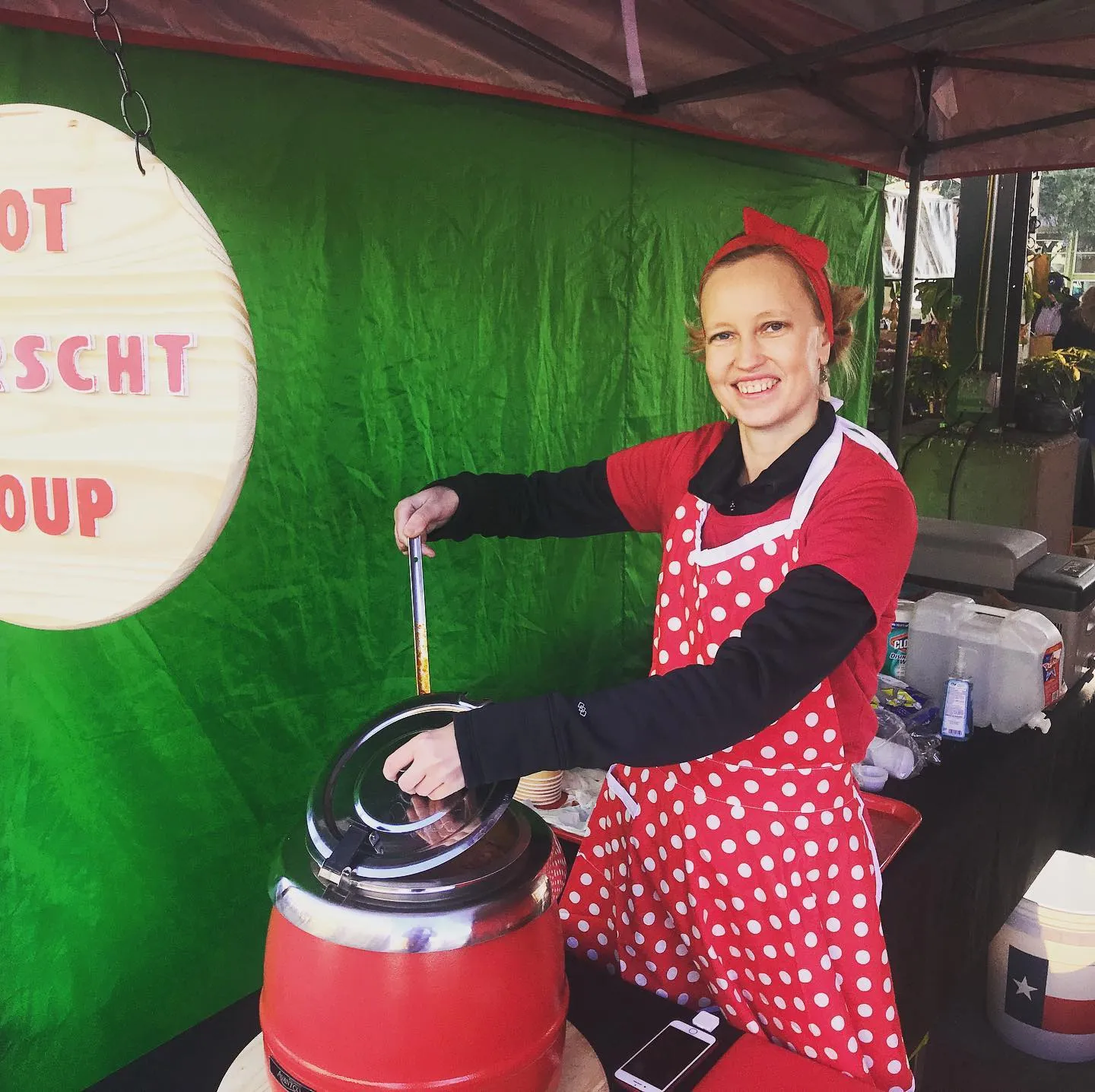 Вікторія Ревенко продає готовий борщ на ринку у Далласі / Фото Вікторії Ревенко
