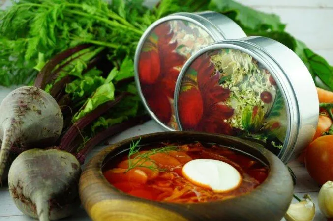 Візерунки на контейнерах мають певні підказки: червоні квіти для класичного бурякового супу, зелені для версії болгарського перцю, жовті для літнього супу. А після приготування борщу таким банкам можна знайти застосування у будь-якому домогосподарстві.
