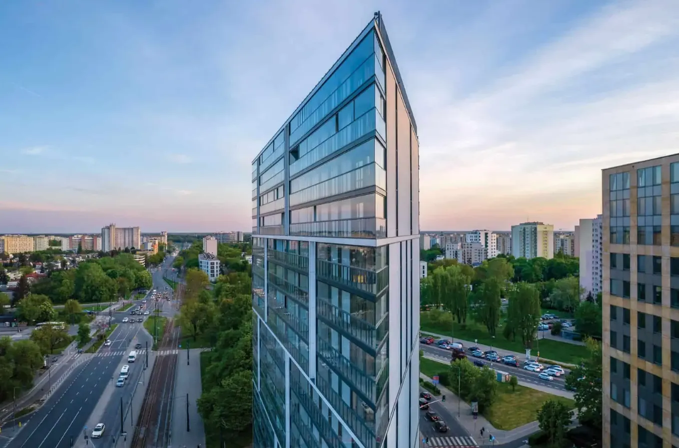 Так, сучасна будівля зі скляним фасадом та трикутної форми з'явилася на вулиці Puławska, 186, що поряд зі станцією метро Wilanowska. У будинку є 206 квартир. Щоправда, усі вони уже зайняті – орендарі заселилися в помешкання, щойно житловий будинок здали в експлуатацію.