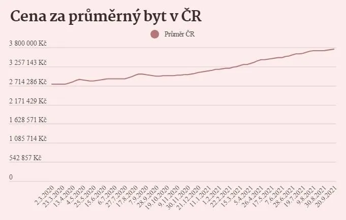 Квартира площею 65 квадратних метрів, згідно з даними Чеського статистичного управління, сьогодні коштує у середньому 3 751 020 крон (понад 4,6 мільйона гривень). Ціна одного квадратного метра зросла більш ніж на 15 тисяч крон – з минулорічних 42 тисяч до нинішніх 58 тисяч крон.