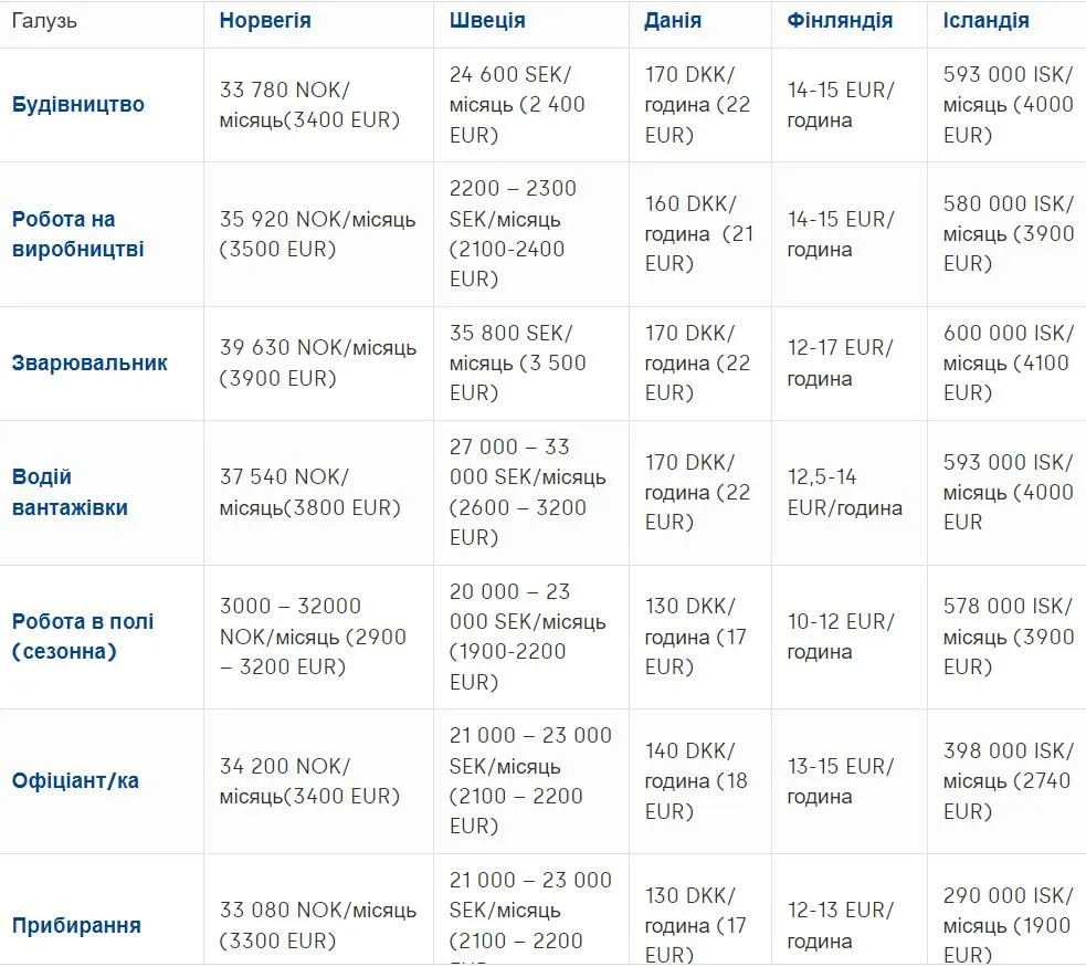 Заробіток в Скандинавії