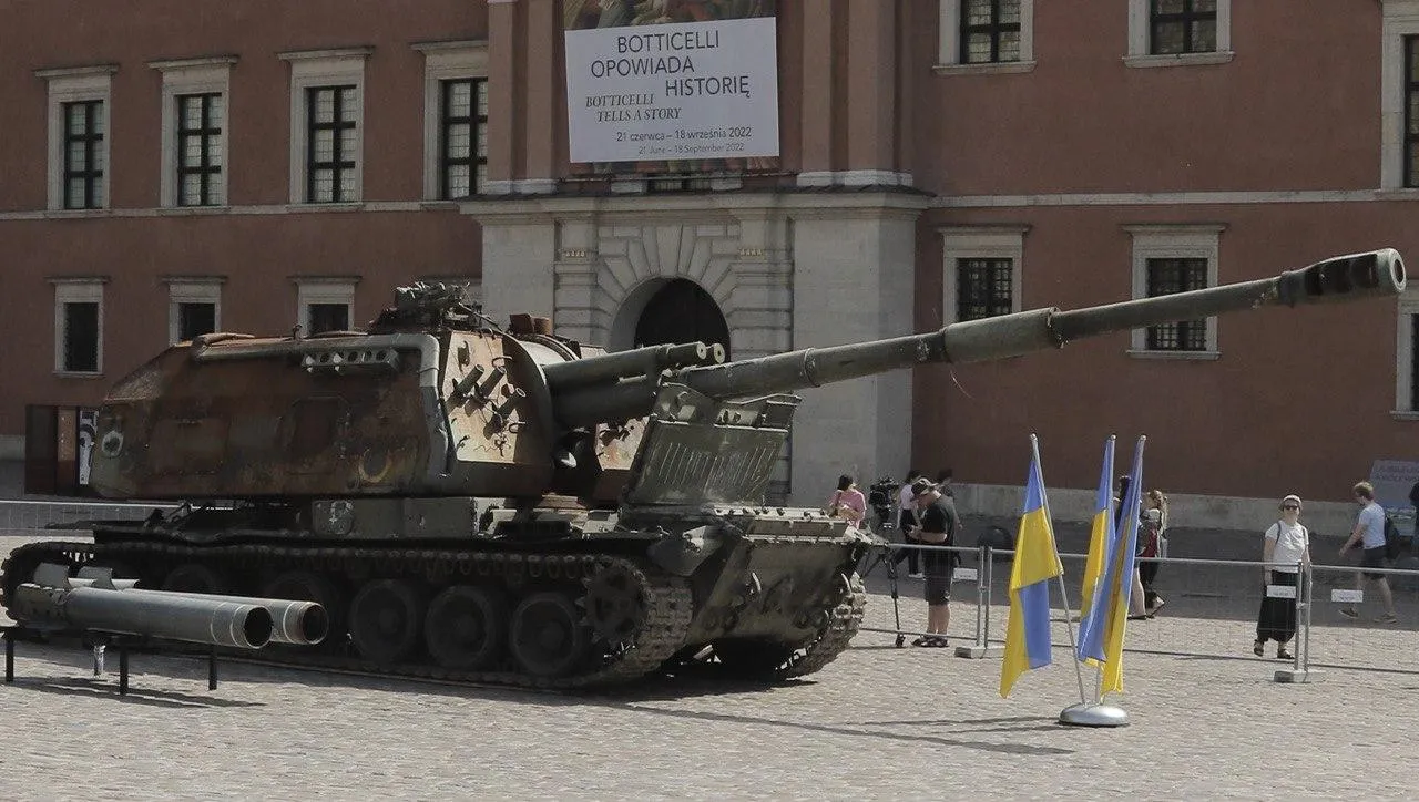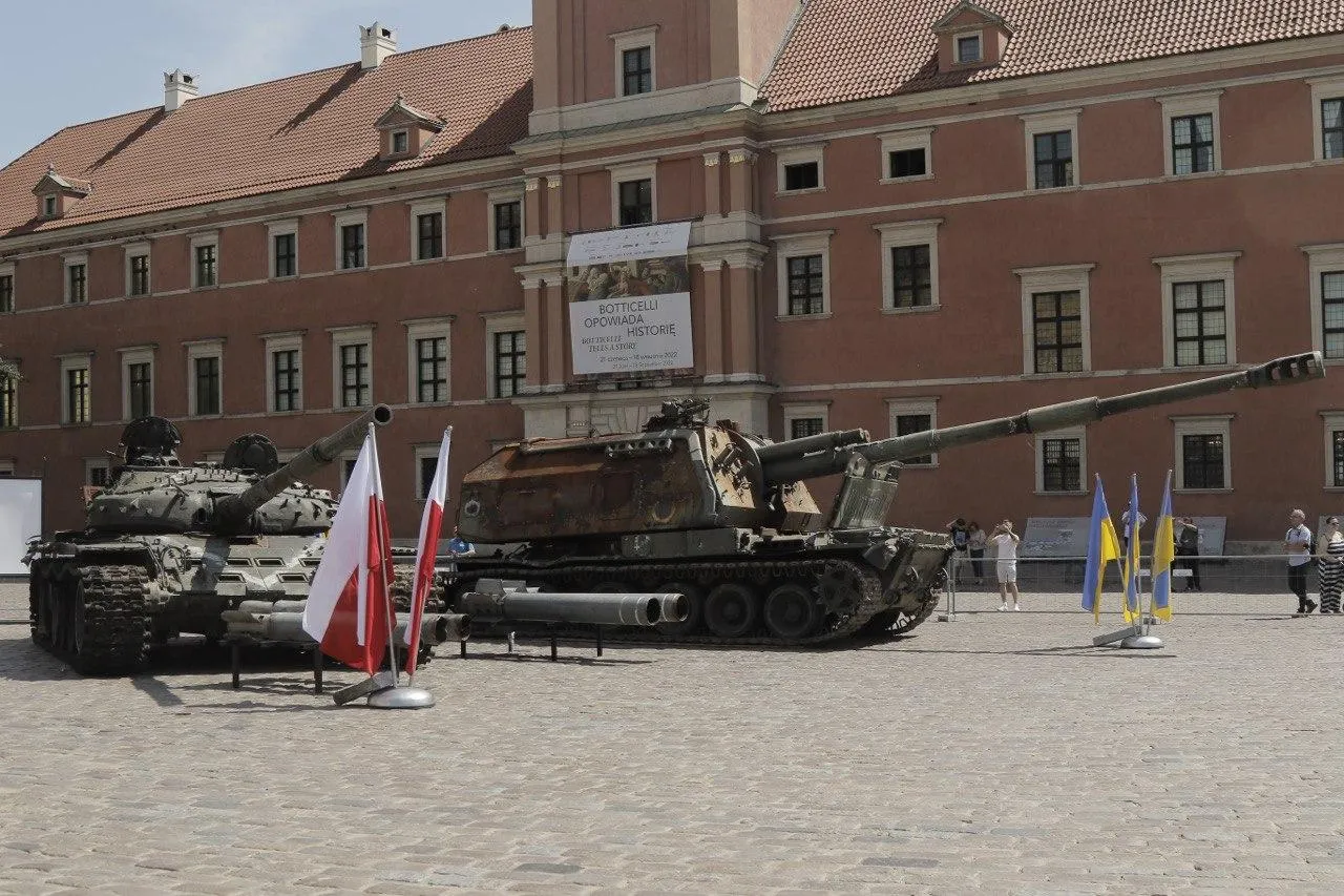 На площі посеред Варшави стоїть танк Т72Б, який знищили в бою 31 березня в селі Дмитрівка під Києвом, артилерійська установка "Мста-С", яку підбила артилерія ЗСУ на Сумщині, зразки снарядів реактивних систем залпового вогню "Ураган" та "Смерч".