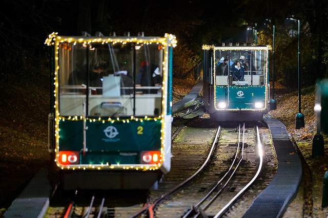 Крім того, комунальники святково прикрасили фунікулер на пагорбі Петршин.