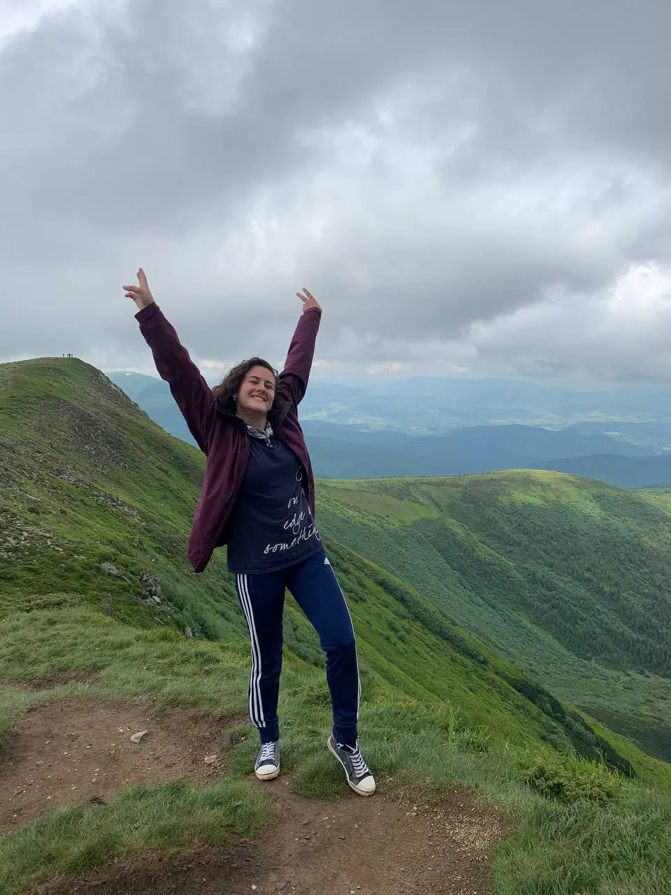 Там я відзначила свій 21-ий день народження. Люблю гори, тому що там я відчуваю повну свободу, натхнення, там я зустрічаю найкращих людей. Збиралась цього року піти ще в кілька походів, але війна порушила ці плани.