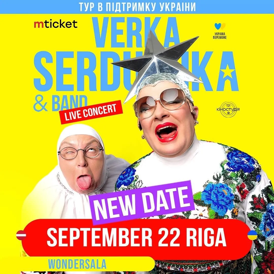 Вєрка Сердючка, її мама та гурт вже готові запалити Ригу. Персонаж Андрія Данилка обожнюють в Європі, тому аншлаг забезпечено. Особливої атмосфери додасть місце проведення – популярний майданчик просто неба біля річки Даугава. Жарти Сердючки, її розповіді між піснями та запальна музика змусять танцювати навіть найсором'язливіших. Тому не пропустіть концерт королеви Євробачення, якщо будете в Ризі.