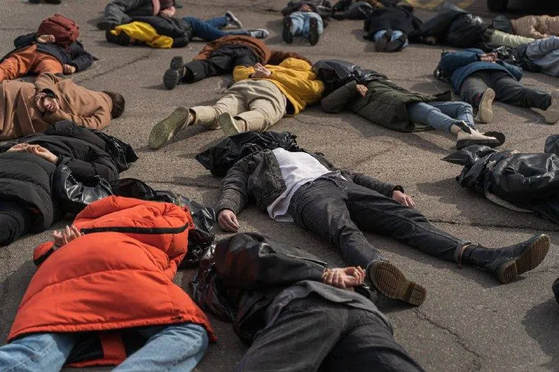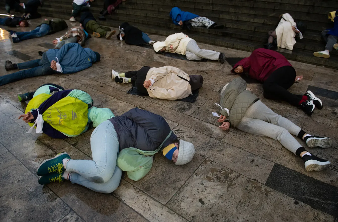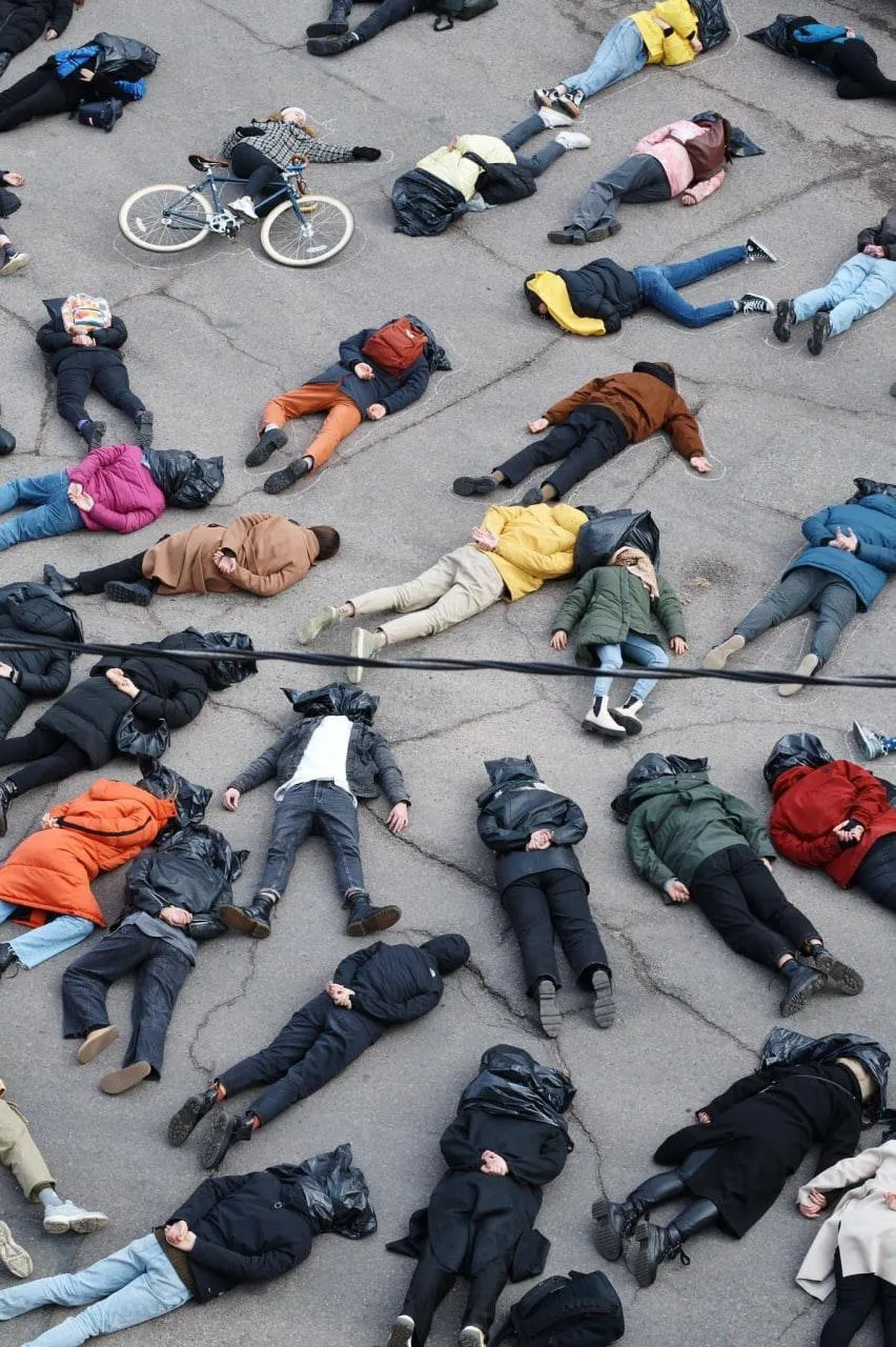 Активісти на площах європейських столиць лягали на землю зі зв'язаними руками у таких позах, у яких знайшли тіла бучанців після звільнення міста від окупантів.