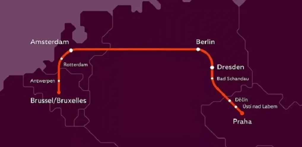 На маршруті передбачено 8 додаткових зупинок, зокрема в Антверпені, Роттердамі, Амстердамі, Берліні та Дрездені. Таким чином, поїзд з'єднає 4 європейські столиці – Бельгії, Нідерландів, Німеччини та Чехії.