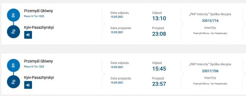 Потяги Київ – Перемишль / Скриншот сайту portalpasazera.pl