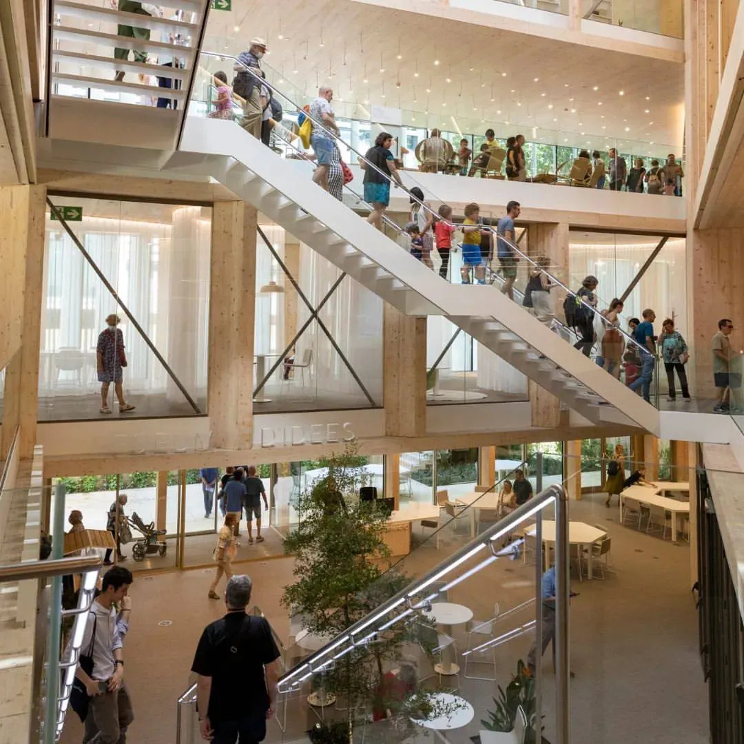 Особливі архітектурні рішення дозволяють відвідувачам насолоджуватися природним світлом, яке заповнює зали бібліотеки завдяки величезним вікнам.
